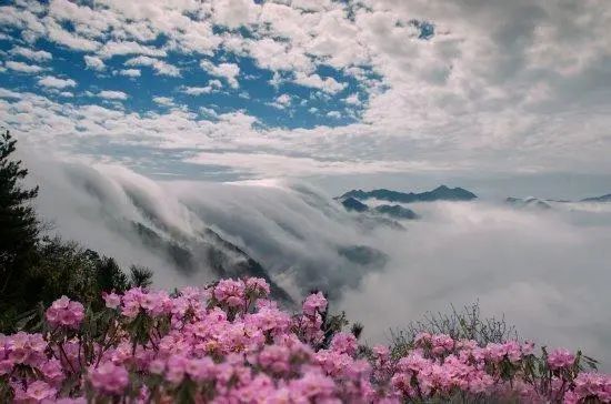 从茨坪到江西坳,火红的云锦杜鹃,粉白的猴头杜鹃铺满山野,宛如天然油画长廊。